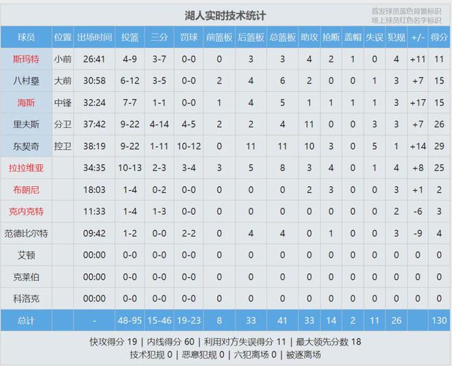 此役过后,湖人5胜2负升至西部第三。最后看看数据,说说你的心情: